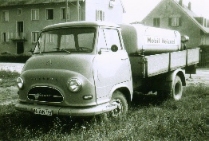 Mit einem Kleinlaster der Marke Hanomag, der wechselweise auch als Pritschenwagen genutzt werden konnte, erfolgten damals die ersten Auslieferungen.